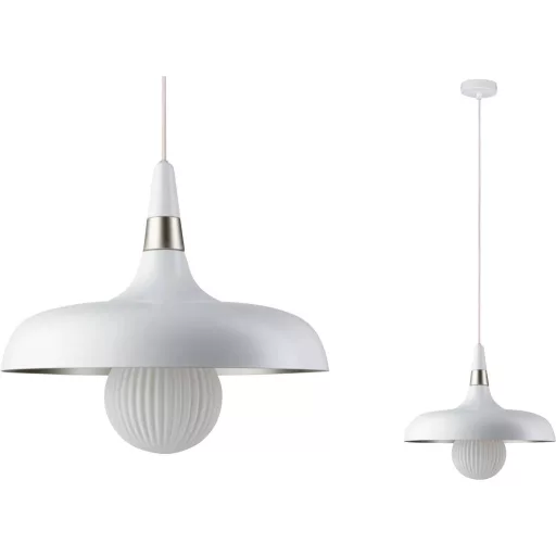 Technical specifications: 2021-es energiahatékonysági osztályok: n.rel. · Foglalat: E27 · Fényforrások száma: 1 · Méret, magasság: 1100 mm · Space (lights): Dolgozószoba,Gyerekszoba,Konyha,Hálószoba,Nappali/étkező · Szín: Fehér (matt),Pezsgő · Védelmi osztály: II · Védelmi típus: IP20 · Átmérő: 342 mm