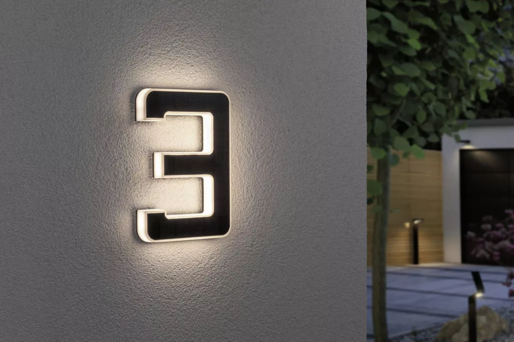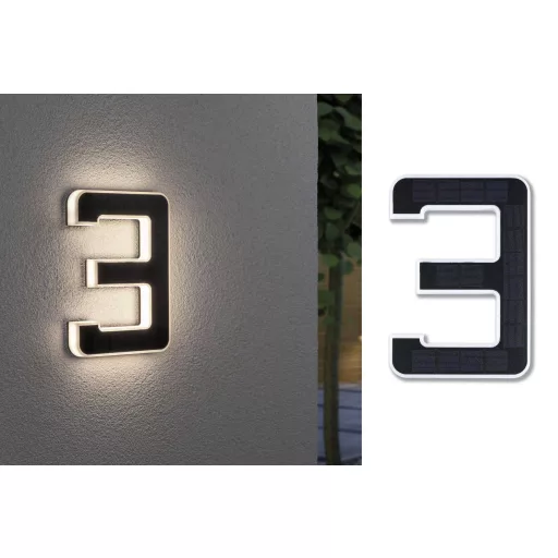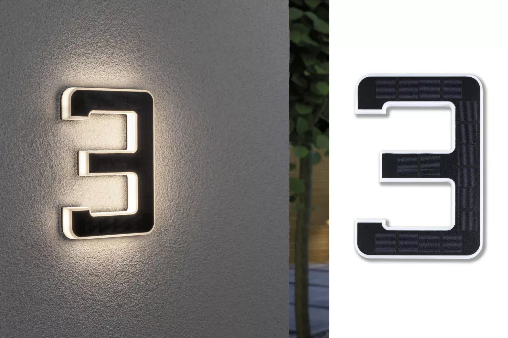 Az izzó 3-as szám tökéletes házszámlámpa önmagában vagy további számjegyekkel. A szolár üzemmódnak köszönhetően a fali aljzattól függetlenül a ház falához rögzíthető. Nappal a láthatatlan napelemet feltölti a napfény, éjszaka a dekoratív szám közvetve világít.