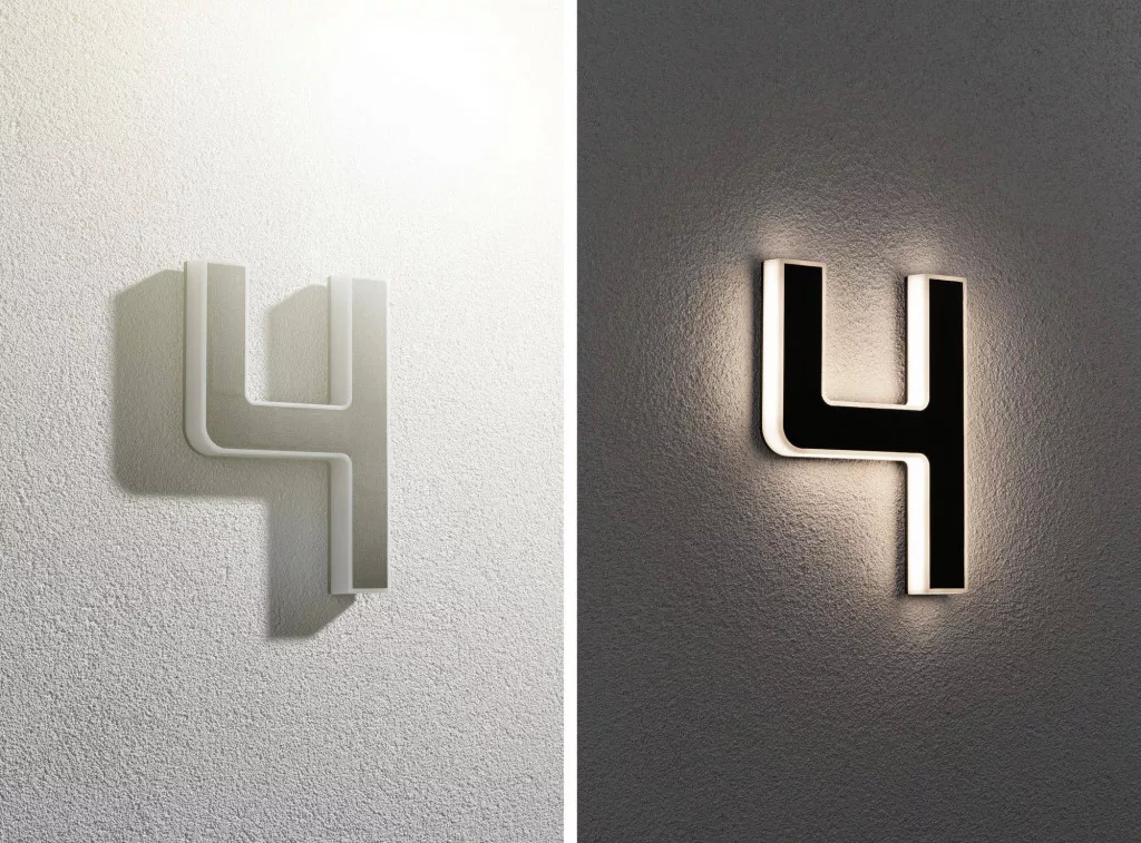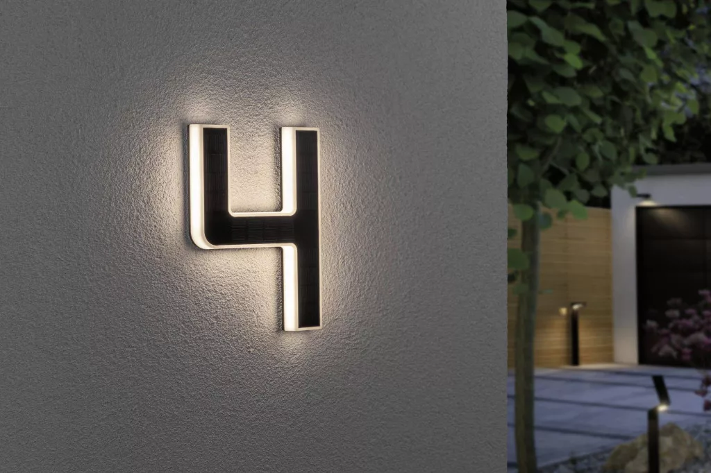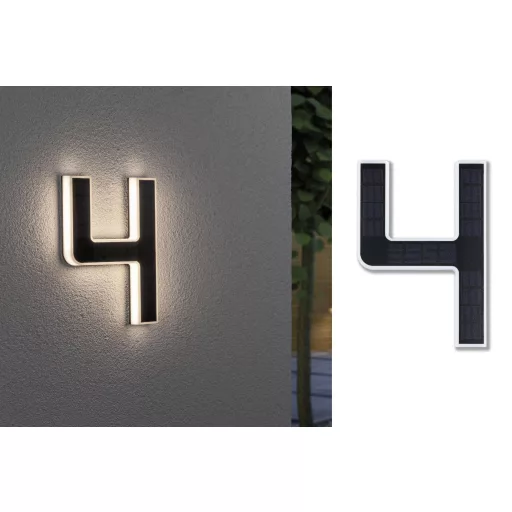 Az izzó 4-es szám tökéletes házszámlámpa önmagában vagy további számjegyekkel. A szolár üzemmódnak köszönhetően a fali aljzattól függetlenül a ház falához rögzíthető. Nappal a láthatatlan napelemet feltölti a napfény, éjszaka a dekoratív szám közvetve világít.