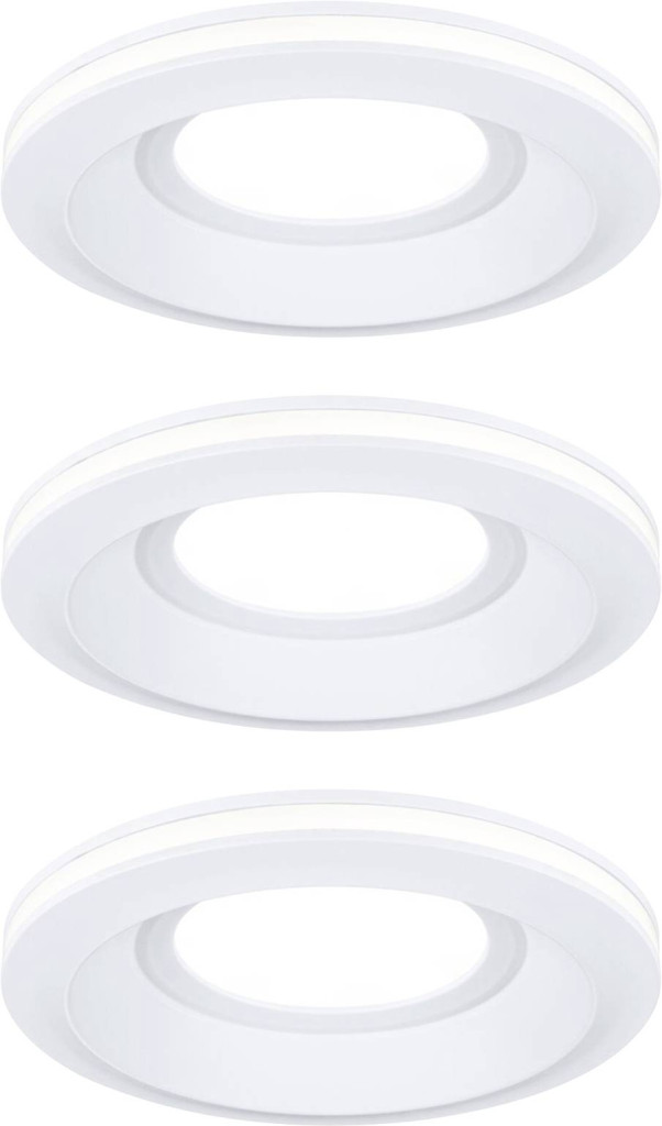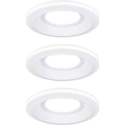 A Sormus süllyesztett lámpakészlet (3 db) fehér színben ideális megoldás a fürdőszobában a hangulatos világítás kialakítására, ahol a funkcionalitás és a modern dizájn találkozik. Az IP65-ös védettségnek köszönhetően a lámpák védettek a vízsugarak behatolása ellen, ezért ideálisak nedves helyiségekben vagy kültéren történő felszereléshez. Az extra nagy fénykibocsátás erős megvilágítást biztosít, amely 3000K színhőmérséklet mellett meleg fehér fényben fürdeti a helyiséget. A süllyesztett lámpák különleges színfoltja a rugalmas fényszabályozás, amely lehetővé teszi a fürdőszobai fényes megvilágítás és a dekoratív fénykiemelések közötti választást. Egy szabványos lámpakapcsoló többszöri megnyomásával választhat a főlámpa, a világító díszgyűrű vagy a kettő kombinációja között. A Sormus süllyesztett lámpatestek beépítési mélysége mindössze 55 mm, ezért lapos álmennyezetbe is beépíthető. A praktikus csatlakozódoboz közvetlen 230 V-os csatlakozást tesz lehetővé, és lehetővé teszi a lámpák egyszerű és korlátozások nélküli összekapcsolását.
