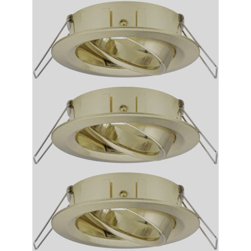 Műszaki adatok: 2021-es energiahatékonysági osztályok: n.rel. · Anyag: Alumínium · Beépítési hossz: 68 mm · Beépítési mélység: 30 mm · Beépítési szélesség: 68 mm · Beépítési átmérő: 68 mm · Forgási tartomány, max.: 50 ° · Fényforrások száma: 1 · Fényforrással: Igen · Gyártói szín: Sárgaréz (matt) · Helyiség: Dolgozószoba, Fürdőszoba, Nedves helyiség, Járda megvilágítás, Ház/garázs, Gyerekszoba, Konyha, Hálószoba, Hangulatos kertvilágítás, Terasz/ülősarok, Nappali/étkező · Készletek: 3 részes készlet · Külső átmérő: 84 mm · Lámpa jellemzők: Dimmelhető · Stílus: Modern/dizájn · Teljesítmény: 10 W · Teljesítmény fényforrásonként: 10 W · Védelmi típus: IP23 · Átmérő: 84 mm