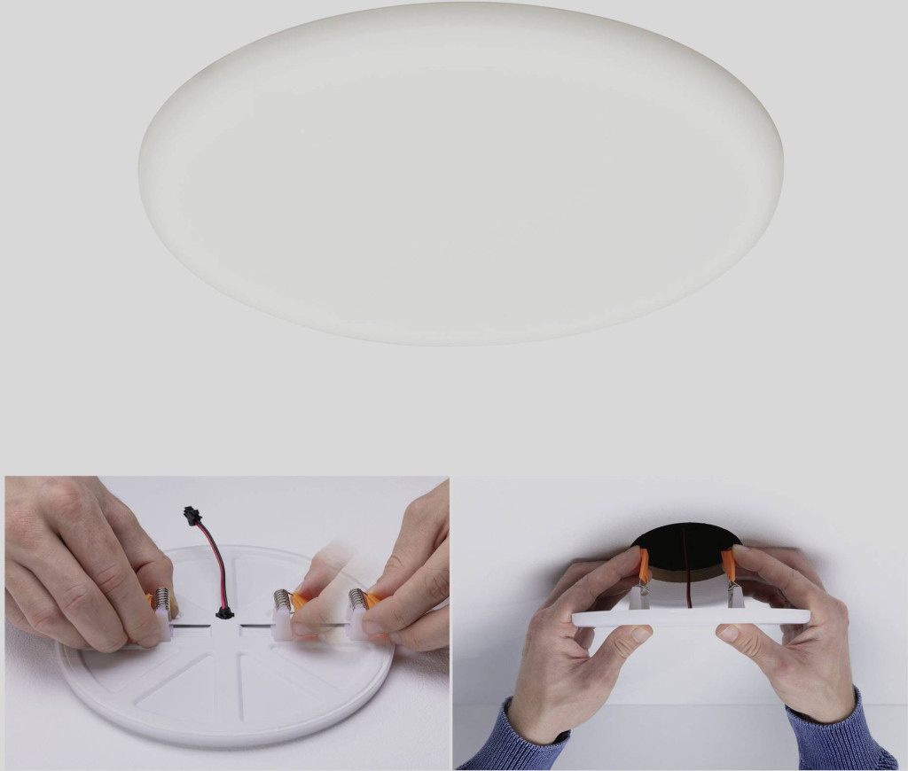 Műszaki adatok: 2021-es energiahatékonysági osztályok: n.rel. · Beépítési mélység: 30 mm · Fényforrások száma: 1 · Fényforrással: Igen · Fényszín: 4000 K · Fényszín (fényforrás): Semleges fehér · Fényáram összesen: 2450 lm · Gyártói szín: Selyem · Helyiség: Dolgozószoba, Fürdőszoba, Nedves helyiség, Járda megvilágítás, Ház/garázs, Gyerekszoba, Konyha, Hálószoba, Hangulatos kertvilágítás, Terasz/ülősarok, Nappali/étkező · Lámpa jellemzők: Dimmelhető · Méret, magasság: 10 mm · Stílus: Modern/dizájn · Teljesítmény: 22 W · Teljesítmény fényforrásonként: 22 W · Védelmi osztály: II · Védelmi típus: IP44 (mennyezetre szerelhető) · Átmérő: 215 mm · Üzemi feszültség: 230 V