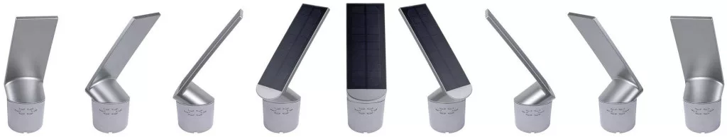 Az antracitban lévő Ilias napsugár fény világít az utadon. A napelemes technológiának köszönhetően az elektromos csatlakozás nem szükséges az összeszereléshez. A nap folyamán az akkumulátort napfény tölti fel, és alkonyatkor kigyullad egy kis irányjelző lámpa, amelyet egy funkcionális fény helyettesít, amint valaki megközelíti.
