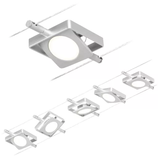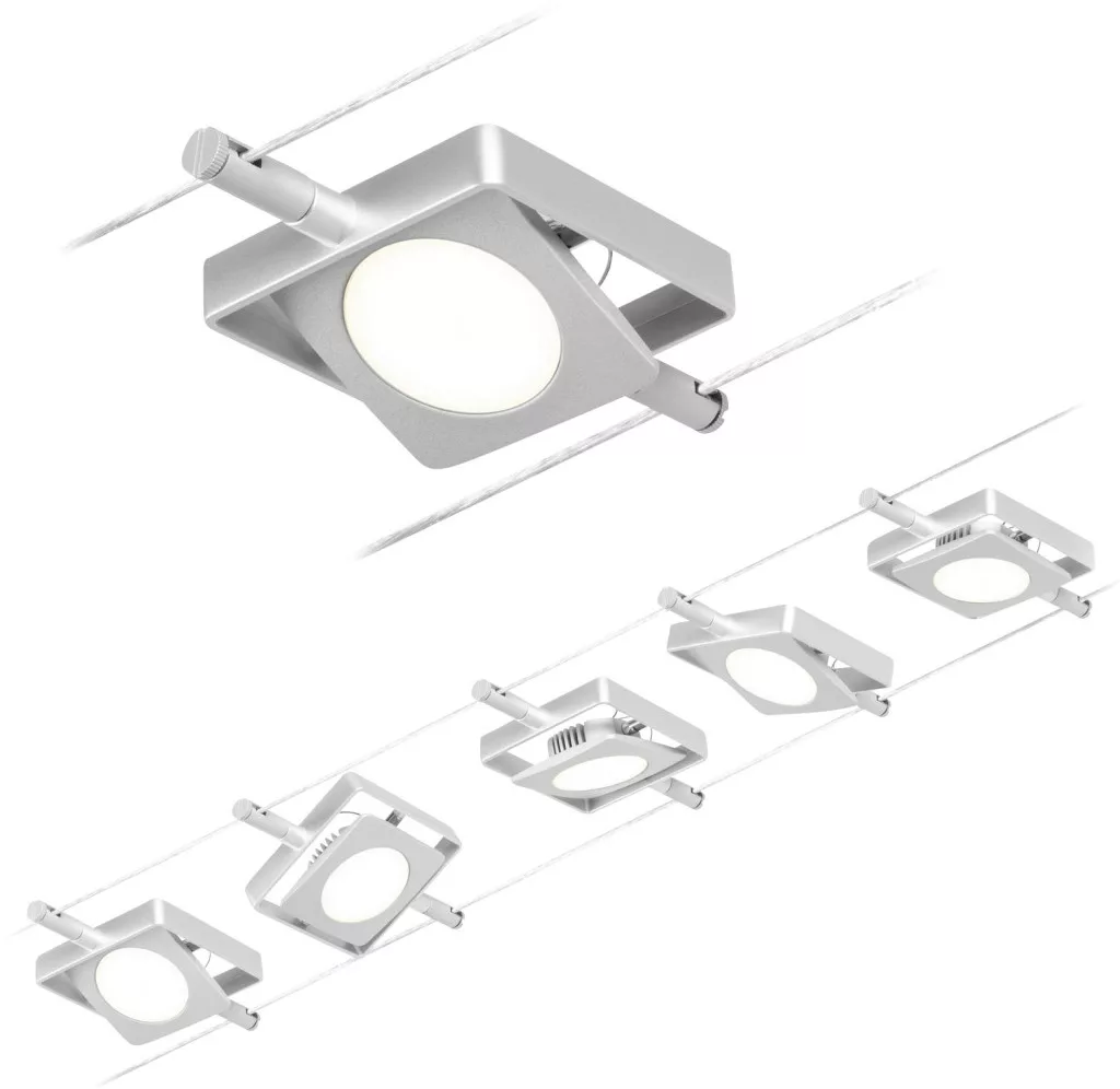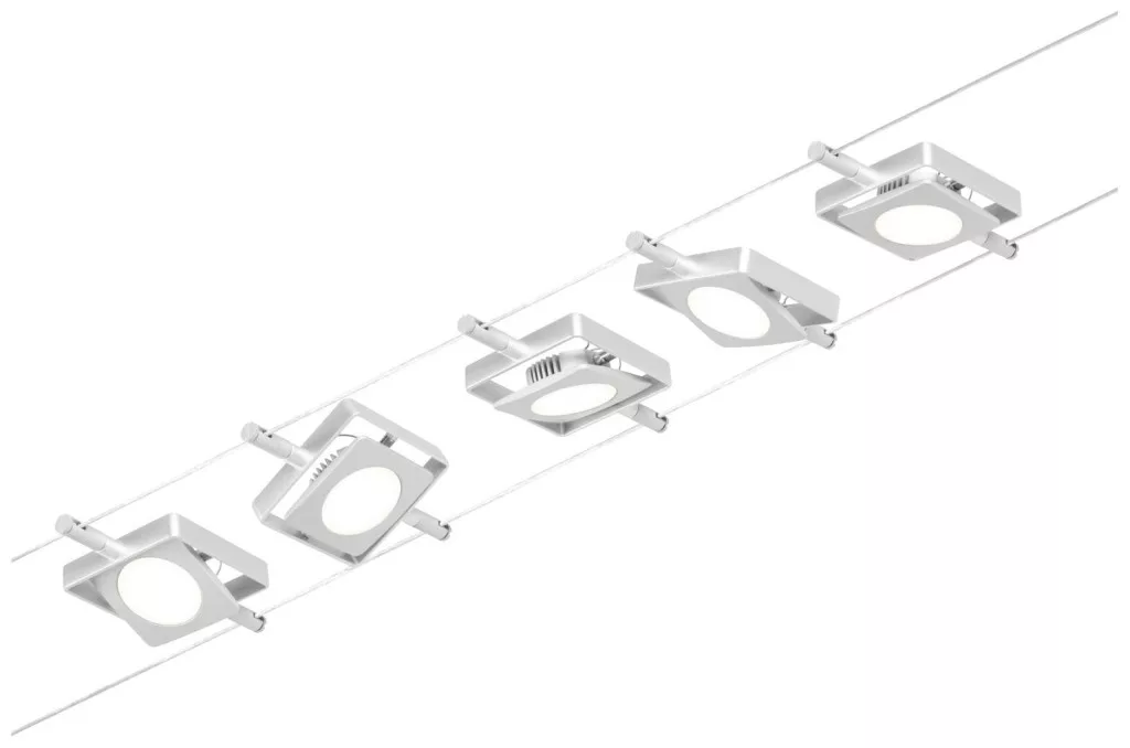 A MacLED sorozat króm (matt) #Chrome 5 LED-es ponttal felszerelhető a falra és a mennyezetre is, és így korlátlan tervezési lehetőségeket kínál. Függetlenül attól, hogy egyenes, ferde vagy ferde - a kábelrendszerek minden helyiségbe illeszkednek, és a nehéz telepítési körülmények problémamegoldói. Az alapkészlet külön-külön kiegészíthető egyedi foltokkal, terelőkkel és egyéb kiegészítőkkel. A 10 m hosszú kötelet középen fel lehet osztani úgy, hogy a rendszer legfeljebb 5 m-ig nyújtható legyen. Ezzel a rendszerrel optimális fényeloszlás valósítható meg, növekvő fényigénnyel könnyen bővíthető. Csak egy konnektor szükséges a lámpák elosztásához a helyiségben. A 12 V DC (egyenfeszültségű) technológiával rendelkező rendszerek nem tompíthatók beépített fali dimmerrel.
