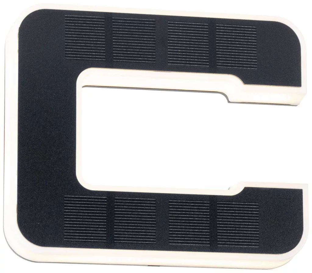 A világító C betű kiegészítésként szolgál, és tökéletes házszám-lámpa más számjegyekkel együtt. A napelemes működésnek köszönhetően a konnektortól függetlenül a ház falára rögzíthető. Nappal a láthatatlan napelemet napfény tölti fel, éjszaka a díszszám közvetetten világít.