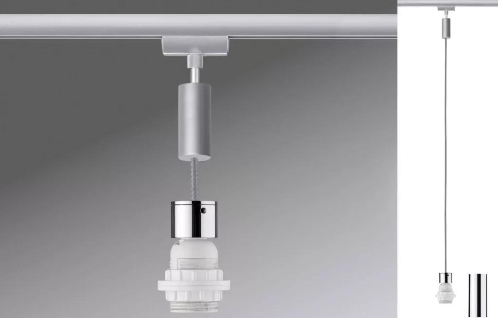 Műszaki adatok: 2021-es energiahatékonysági osztályok: n.rel. · Anyag: Fém · Foglalat: E27 · Fényforrás típus: LED · Fényforrások száma: 1 · Gyártói szín: Króm (matt), Króm · Helyiség: Nappali/étkező · Hossz (max.): 150 cm · Lámpa jellemzők: Dimmelhető · Sorozat: Univerzális · Stílus: Modern/dizájn, Fiatal lakás · Teljesítmény: 20 W · Teljesítmény fényforrásonként: 20 W · Védelmi osztály: II · Üzemi feszültség: 230 V