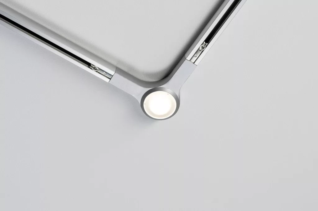 Műszaki adatok: Anyag: Fém · Lámpa jellemzők: világítással,Dimmelhető · Méret, hossz: 14.1 cm · Méret, magasság: 2.7 cm · Méret, szélesség: 14.1 cm · Sorozat: URail · Szín: Króm (matt) · Teljesítmény: 5.8 W · Termék típus: Nagyfeszültségű sínes rendszer elemek · További műszaki adatok: Fényszín: 2700 K · Fényszín: melegfehér · Világítási fluxus: 420 lm · Világítási rendszer összetevők: L összekötő · Védelmi osztály: II · Üzemi feszültség: 230 V