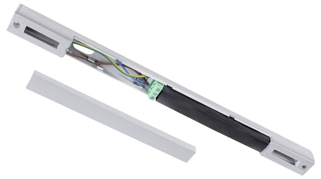 Technical specifications: Design (lights): #####Modern/Design,#####Junges Wohnen · Méret, hossz: 21 mm · Méret, magasság: 18 mm · Méret, szélesség: 304 mm · Sorozat: URail · Space (lights): Dolgozószoba,Gyerekszoba,Konyha,Hálószoba,Nappali/étkező · Szín: Króm (matt) · Világítási rendszer összetevők: #####Mitteleinspeiser · Üzemi feszültség: 230 V