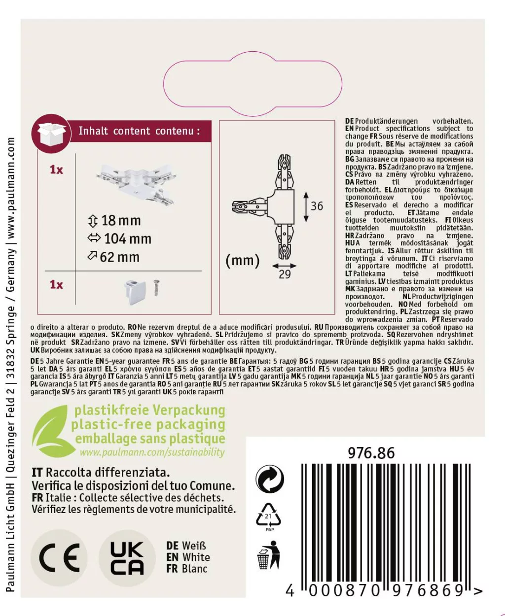 Ezzel a csatlakozóval T-telepítéseket tervezhet. Ez az URail sorozat számos rendszerkomponensének egyike. További elemekkel együtt tökéletesen kialakíthatják személyes 230 voltos URail sínrendszerét. A rendszer max. 1000 W össz teljesítményre van tervezve, LED-es lámpatestekkel működik, a lámpatestekhez energiatakarékos és halogén fényforrások alkalmazhatók.