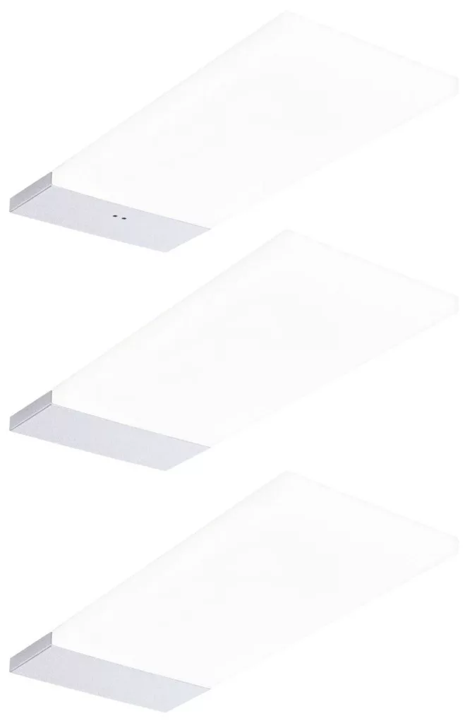 Műszaki adatok: 2021-es energiahatékonysági osztályok: n.rel. · Fényforrások száma: 3 · Fényszín: 4000 K · Fényszín (fényforrás): Semleges fehér · Fényáram összesen: 540 lm · Fényáram/fényforrás (lumen): 180 lm · Gyártói szín: Ezüst · Helyiség: Dolgozószoba, Gyerekszoba, Konyha, Hálószoba, Nappali/étkező · Kivitel (lámpa): Derékszögű · Méret, magasság: 6.5 mm · Méret, mélység: 190 mm · Méret, szélesség: 80 mm · Stílus: Modern/dizájn · Teljesítmény: 2.5 W · Teljesítmény fényforrásonként: 2.5 W · Védelmi osztály: II · Védelmi típus: IP20 · Üzemi feszültség: 230 V