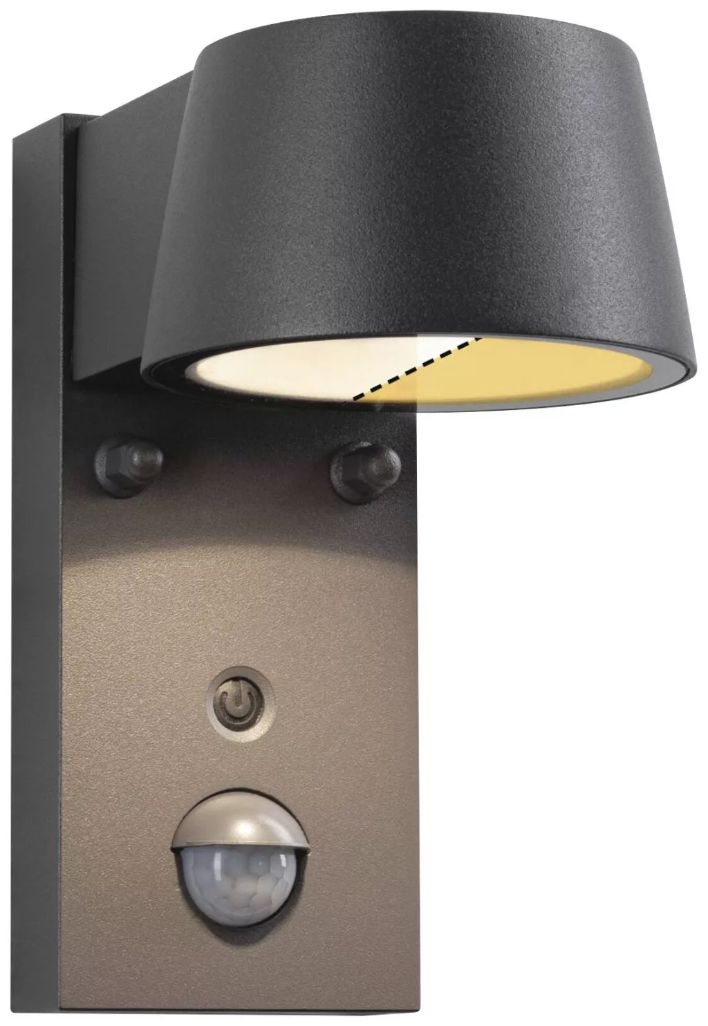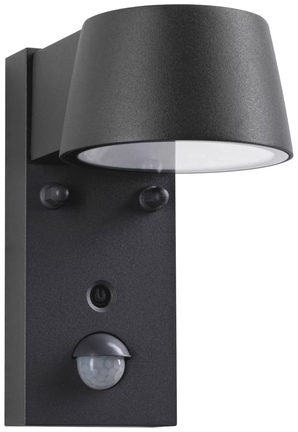 Műszaki adatok: 2021-es energiahatékonysági osztályok: n.rel. · Fényforrás típus: LED · Fényforrások száma: 1 · Fényforrással: Igen · Fényszín: 2200 K · Fényszín (fényforrás): arany · Fényáram összesen: 450 lm · Fényáram/fényforrás (lumen): 450 lm · Gyártói szín: Fekete · Helyiség: Ház/garázs, Járda megvilágítás, Terasz/ülősarok, Hangulatos kertvilágítás, Nedves helyiség · Kivitel (lámpa): Trapéz · Lámpa jellemzők: Mozgásérzékelővel · Méret, magasság: 165 mm · Méret, mélység: 153 mm · Méret, szélesség: 96 mm · Teljesítmény: 6 W · Teljesítmény fényforrásonként: 6 W · Védelmi típus: IP44 · Üzemi feszültség: 230 V