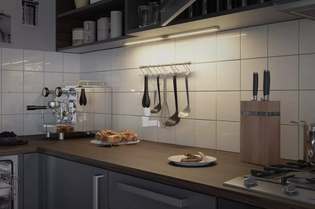 A 35 cm hosszú Spot Barre a felső szekrény alá van felszerelve, és fényt hoz a munkafelületre. A Clever Connect egyedi rendszerű bútorvilágítást kínál egy rendszerben. A lámpák, a meghajtók és a tartozékok szabadon összeilleszthetők és könnyen összeszerelhetők. A TunableWhite funkció kombinálja a „dolgozást” és a „jó érzést”, mint a fény hangulatát. A korlátlan kábelhossznak köszönhetően a rendszer folyamatosan bővíthető.