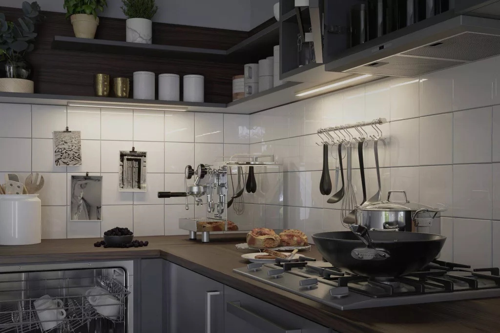 Az 55 cm hosszú Spot Barre a felső szekrény alá van felszerelve, és fényt hoz a munkafelületre. A Clever Connect egyedi rendszerű bútorvilágítást kínál egy rendszerben. A lámpák, a meghajtók és a tartozékok szabadon összeilleszthetők és könnyen összeszerelhetők. A TunableWhite funkció kombinálja a „dolgozást” és a „jó érzést”, mint a fény hangulatát. A korlátlan kábelhossznak köszönhetően a rendszer folyamatosan bővíthető.