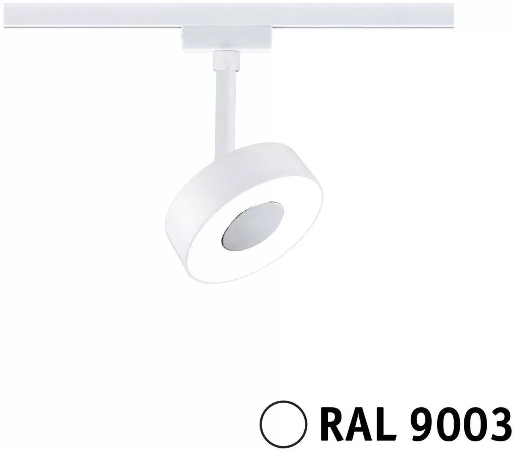 Műszaki adatok: 2021-es energiahatékonysági osztályok: n.rel. · Fényforrások száma: 1 · Fényszín: 4000 K · Fényszín (fényforrás): Semleges fehér · Fényáram összesen: 190 lm · Fényáram/fényforrás (lumen): 190 lm · Gyártói szín: Jelzőfehér · Helyiség: Dolgozószoba, Gyerekszoba, Konyha, Hálószoba, Nappali/étkező · Méret, magasság: 132 mm · Sorozat: URail · Stílus: Modern/dizájn · Teljesítmény: 5 W · Teljesítmény fényforrásonként: 5 W · Védelmi osztály: II · Átmérő: 100 mm · Élettartam: 30000 óra · Üzemi feszültség: 230 V