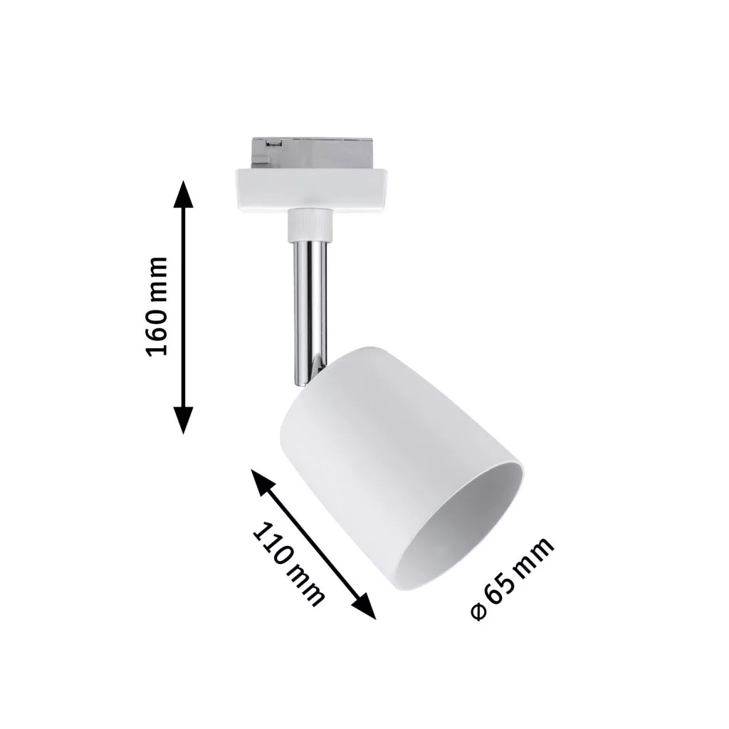 Technical specifications: 2021-es energiahatékonysági osztályok: n.rel. · Anyag: Fém · Design (lights): #####Modern/Design,#####Junges Wohnen · Foglalat: GU10 · Fényforrás típus: LED (egyszínű) · Fényforrások száma: 1 · Lámpa jellemzők: Dimmelhető,Forgatható,Dönthető · Méret, hossz: 9 cm · Méret, magasság: 14 cm · Méret, szélesség: 5.8 cm · Sorozat: URail · Space (lights): Nappali/étkező,Hálószoba,Konyha,Dolgozószoba · Szín: Fehér,Króm · Teljesítmény: 10 W · Teljesítmény fényforrásonként: 10 W · Védelmi osztály: II · Üzemi feszültség: 230 V