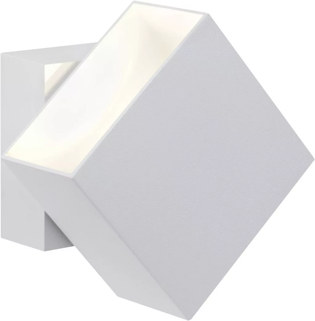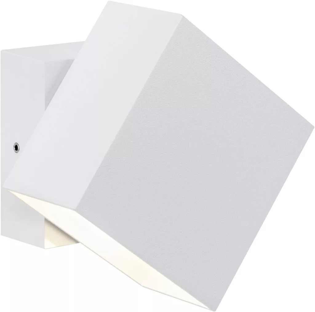 Műszaki adatok: 2021-es energiahatékonysági osztályok: n.rel. · Anyag: Alumínium · Forgási tartomány, max.: 90 ° · Fényforrások száma: 2 · Fényforrással: Igen · Fényszín: 2700 K · Fényszín (fényforrás): Melegfehér · Fényáram összesen: 400 lm · Gyártói szín: Fehér · Helyiség: Terasz/ülősarok, Ház/garázs, Járda megvilágítás · Kivitel (lámpa): Szögletes · Lámpa jellemzők: Felfelé és lefelé világít, Beállítható fénykilépés · Méret, hossz: 10 cm · Méret, magasság: 10 cm · Méret, szélesség: 9.3 cm · Stílus: Modern/dizájn, Fiatal lakás · Teljesítmény: 6 W · Teljesítmény fényforrásonként: 3 W · Védelmi osztály: II · Védelmi típus: IP65 · Üzemi feszültség: 230 V