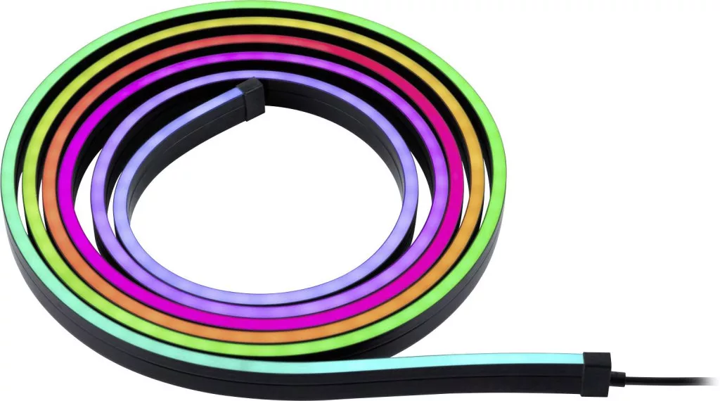 A 3 m hosszú EntertainLED Black Neon LED tömlő egy kiváló minőségű, rugalmas és finom LED tömlő, amely egyedi fényhatásokat biztosít. Egyszerű fekete kivitelben diszkréten illeszkedik bármilyen környezetbe, és tökéletes csendes környezeti háttérvilágításnak. Az előre telepített jelenetekkel és a mellékelt távirányítóval a vezérlés egyszerű és egyértelmű – nincs szükség beállításra vagy konfigurációra. Az 5 V-os USB-C vagy 12 V-os dugaszoló transzformátor alacsony energiafogyasztásának köszönhetően a Neon Tube környezetbarát és költséghatékony. Az egyenes és sarokkonzolok egyszerű rögzítést tesznek lehetővé falakhoz vagy bútorokhoz, míg a szabályozható RGB Rainbow funkció számos világítási lehetőséget biztosít.
