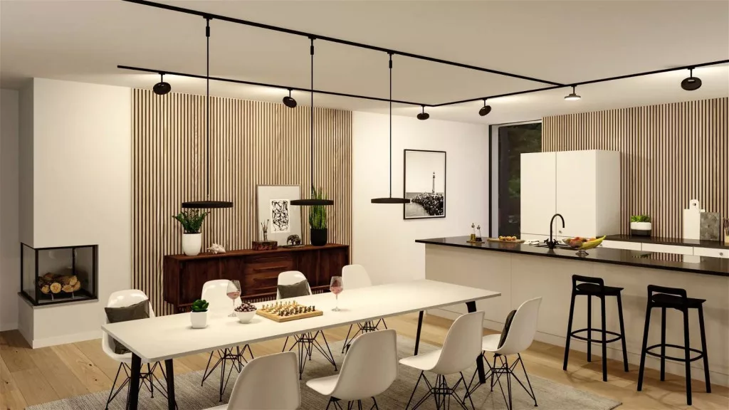 A matt fekete, 3000K-es színhőmérsékletű Hildor URail LED függeszték időtlen, elegáns megjelenésével és praktikus fényerő-szabályozó funkciójával lenyűgöző. A modern dizájn tökéletesen illeszkedik a különféle belső stílusokhoz. Különösen figyelemre méltóak a nagy fénykibocsátó felületek, amelyek kellemes, szórt fényt bocsátanak ki. A három fokozatban (100%, 50%, 25%) szabályozható fényerőnek köszönhetően a fény minden hangulathoz igazítható. A fényerőszinteket úgy tervezték, hogy a középső szint elegendő legyen a mindennapi használatra, és szükség szerint szabályozható legyen. Az inga praktikus memória és visszaállítási funkcióval is rendelkezik. Az inga hossza 1,5 m, és rövidíthető.