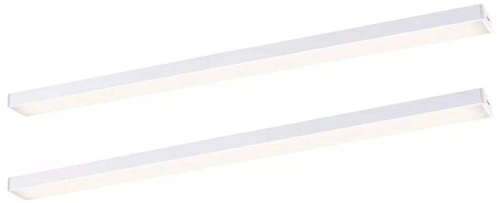Műszaki adatok: 2021-es energiahatékonysági osztályok: n.rel. · Fényforrások száma: 2 · Fényszín: 3000 K · Fényszín (fényforrás): Melegfehér · Fényáram összesen: 700 lm · Fényáram/fényforrás (lumen): 350 lm · Gyártói szín: Fehér (matt) · Helyiség: Dolgozószoba, Gyerekszoba, Konyha, Hálószoba, Nappali/étkező · Kivitel (lámpa): Rúd · Lámpa jellemzők: Mozgásérzékelővel · Méret, magasság: 11 mm · Méret, mélység: 26 mm · Méret, szélesség: 350 mm · Stílus: Modern/dizájn · Teljesítmény: 4 W · Teljesítmény fényforrásonként: 4 W · Védelmi osztály: III · Védelmi típus: IP20 · Üzemi feszültség: 230 V