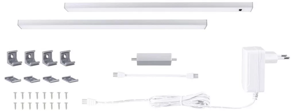 A 350x26 mm-es 350x26 mm-es, finom matt krómozott Inline szekrény alatti lámpából álló bővíthető készlet elegáns megoldást kínál a konyhai munkafelületek megvilágítására. A bútorlámpák optimális megvilágítást biztosítanak és kellemes légkört teremtenek. Az érintés nélküli vezérlésnek köszönhetően higiénikus munkavégzést tesznek lehetővé. Az indítókészlet rugalmasan bővíthető, maximum egy bővítőkészlet erejéig. Különböző hosszúságok kombinálhatók a megfelelő világítási megoldás megtalálásához. A fényerőszabályzó funkcióval a meleg fehér fényszín egyedileg állítható az Ön igényei szerint. A beszerelés egyszerűen közvetlenül 230 V-ra, dugaszoló transzformátorral történik.