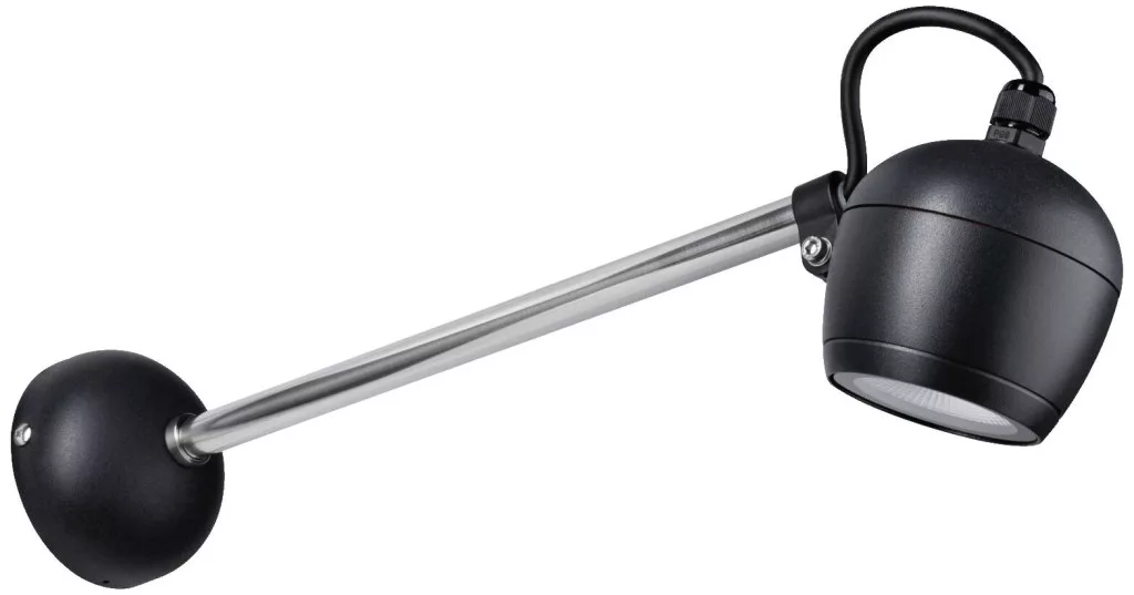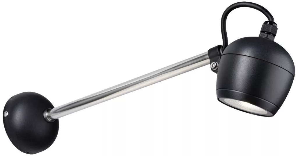 A 60 fokos sugárzási szögű, meleg fehér fényű Kikolo fali lámpa optimális megvilágítást biztosít a házfalakon vagy a bejárati területeken. A hosszú lámpakarnak és a flexibilis lámpafejnek köszönhetően igény szerint beállítható és korrózióálló anyagával partközeli használatra is alkalmas. Az IP65-ös védelem a fényt vízsugárral szemben is ellenállóvá teszi.