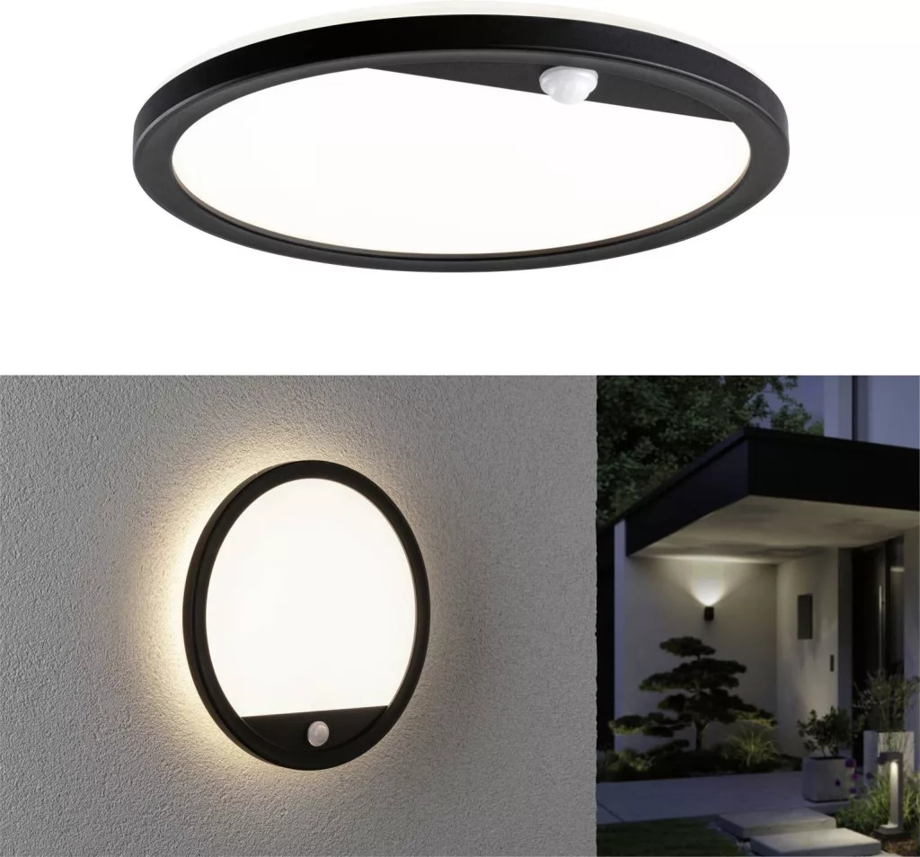 LED kültéri panel Lamina mozgásérzékelővel IP44 280mm körül 1900lm 14.5W 3000K fekete háttérvilágítással