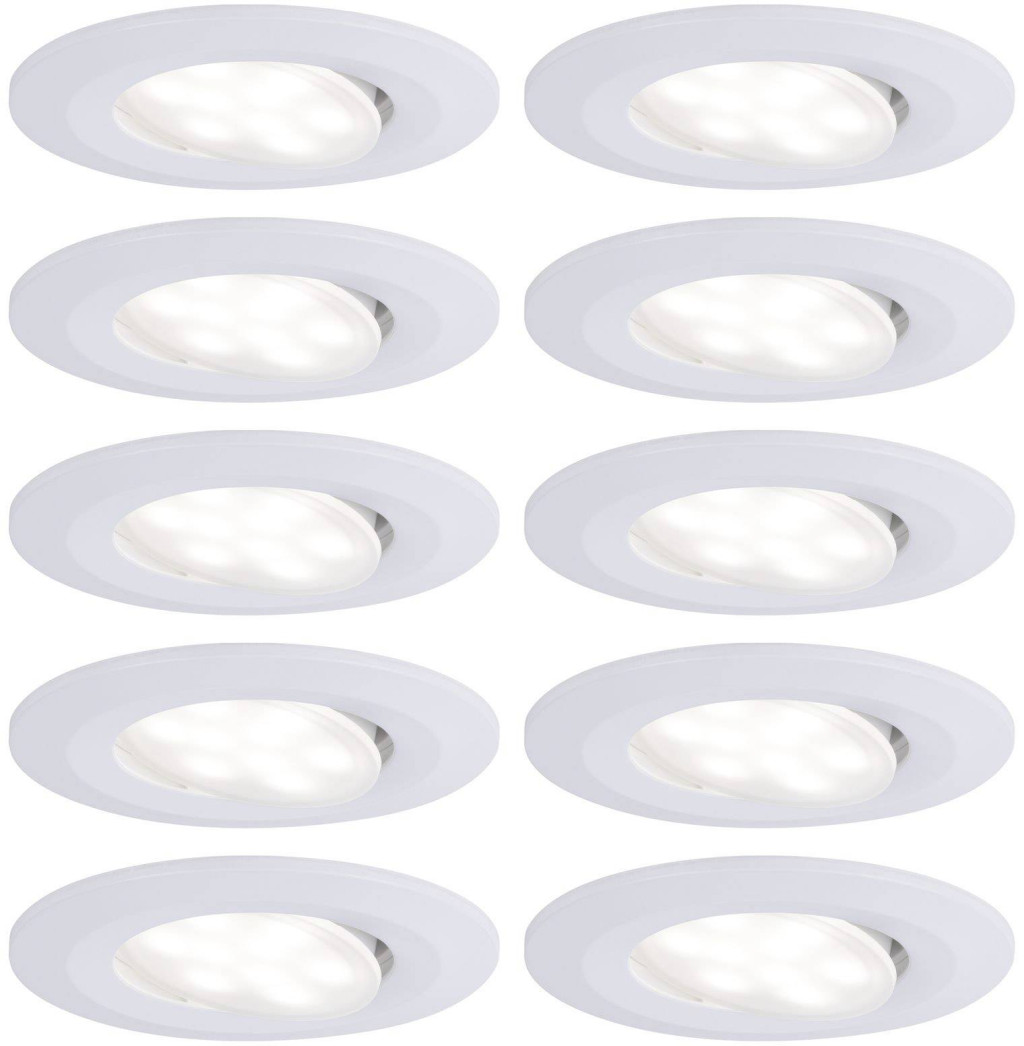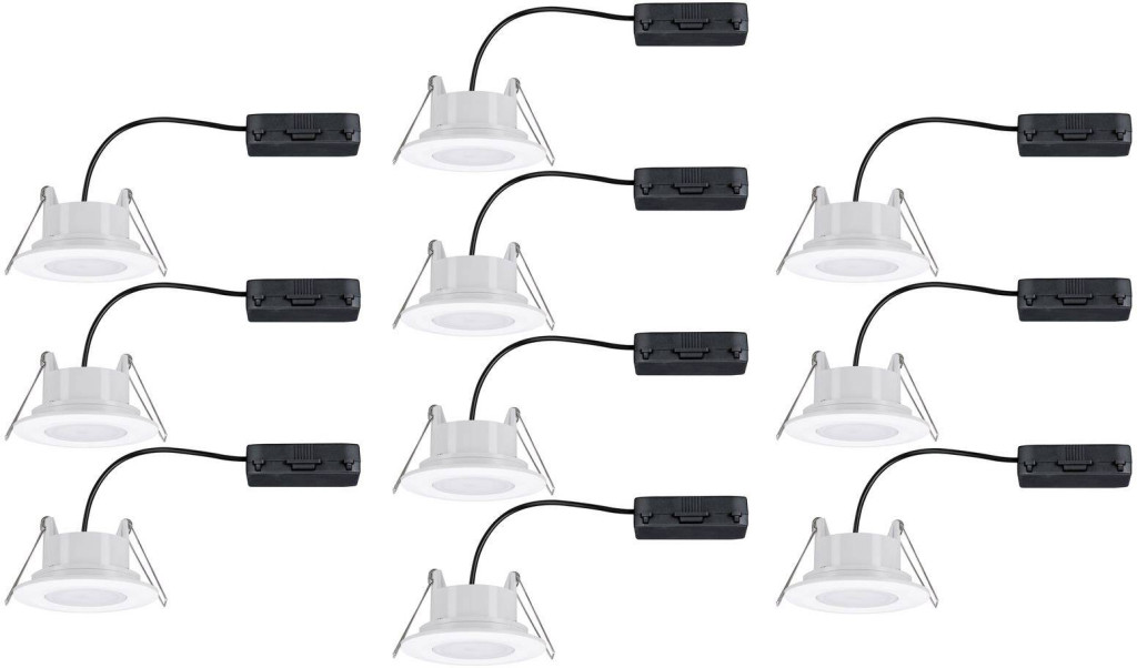 Kompaktak, egyediek és világosak. A rugalmasan használható Calla LED süllyesztett lámpák 10x6 W-os matt fehér kivitelben, különösen a nedves helyiségekben találják meg a helyüket. A tükröződésmentes, műanyagból készült, süllyesztett spotlámpák új berendezésekhez és meglévő berendezések cseréjéhez egyaránt alkalmasak. Az IP65-ös vízsugár elleni védelemnek köszönhetően a nedvesség nem árthat neki. Az elforgatható funkció lehetővé teszi, hogy a fényt oda irányítsa, ahová szükséges. A 230 V-os közvetlen csatlakozásnak köszönhetően a lámpák könnyen összekapcsolhatók korlátozások nélkül. A szállítási terjedelem LED-izzókat tartalmaz, amelyek semleges fehér fényükkel hangulatos hangulatot teremtenek.