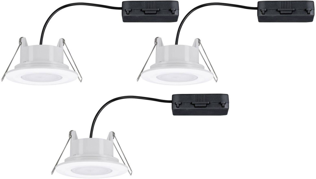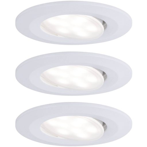 Műszaki adatok: 2021-es energiahatékonysági osztályok: n.rel. · Beépítési mélység: 45 mm · Beépítési átmérő: 68 mm · Fényforrással: Igen · Fényszín: 3000 K · Fényáram összesen: 430 lm · Fényáram/fényforrás (lumen): 430 lm · Gyártói szín: Fehér (matt) · Helyiség: Fürdőszoba · Készletek: 3 részes készlet · Külső átmérő: 90 mm · Stílus: Modern/dizájn · Átmérő: 90 mm