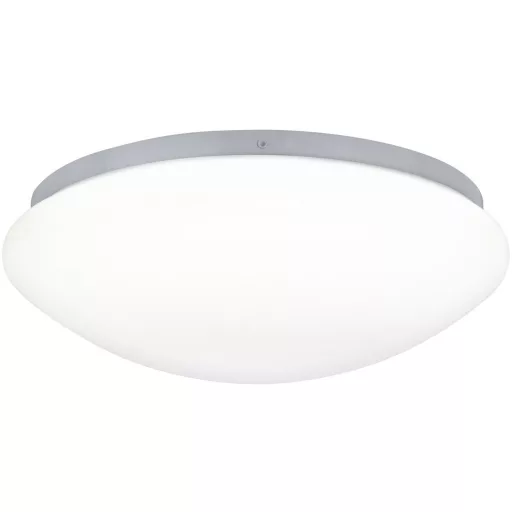 A Leonis 4000 K mennyezeti lámpa fröccsenés elleni védelme révén különösen alkalmas nedves helyiségekben való használatra. A lekerekített üvegárnyékot az állandóan beépített LED-ek világítják meg semleges fehér fényben.