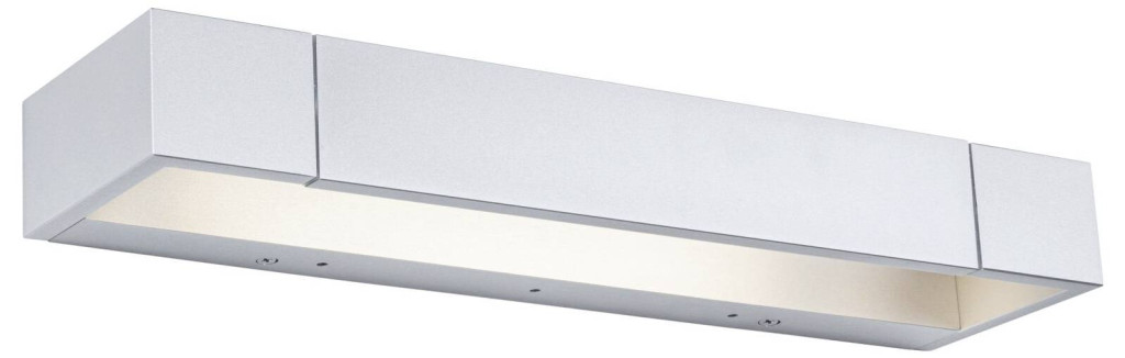 Technical specifications: 2021-es energiahatékonysági osztályok: n.rel. · Dimmelhető: Igen · Fényforrás típus: LED (egyszínű) · Fényforrások száma: 1 · Fényszín: 2700 K · Fényszín (fényforrás): Melegfehér · Fényáram összesen: 1000 lm · Fényáram/fényforrás (lumen): 1000 lm · Méret, magasság: 50 mm · Méret, mélység: 100 mm · Méret, szélesség: 400 mm · Space (lights): Dolgozószoba,Fürdőszoba,Nedves helyiség,Járda megvilágítás,Ház/garázs,Gyerekszoba,Konyha,Hálószoba,Hangulatos kertvilágítás,Terasz/ülősarok,Nappali/étkező · Szín: Alumínium (matt) · Teljesítmény: 11 W · Teljesítmény fényforrásonként: 11 W · Védelmi osztály: II · Védelmi típus: IP44