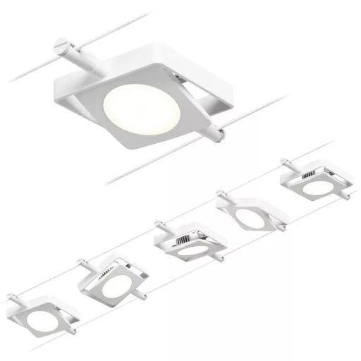 A fehér # króm színű, 5 LED-es ponttal ellátott MacLED sorozat a falra és a mennyezetre is felszerelhető, és így korlátlan tervezési lehetőségeket kínál. Függetlenül attól, hogy egyenes, ferde vagy ferde - a kábelrendszerek minden helyiségbe illeszkednek, és a nehéz telepítési körülmények problémamegoldói. Az alapkészlet külön-külön kiegészíthető egyedi foltokkal, terelőkkel és egyéb kiegészítőkkel. A 10 m hosszú kötelet középen fel lehet osztani úgy, hogy a rendszer legfeljebb 5 m-ig nyújtható legyen. Ezzel a rendszerrel optimális fényeloszlás valósítható meg, növekvő fényigénnyel könnyen bővíthető. Csak egy konnektor szükséges a lámpák elosztásához a helyiségben. A 12 V DC (egyenfeszültségű) technológiával rendelkező rendszerek nem tompíthatók beépített fali dimmerrel.