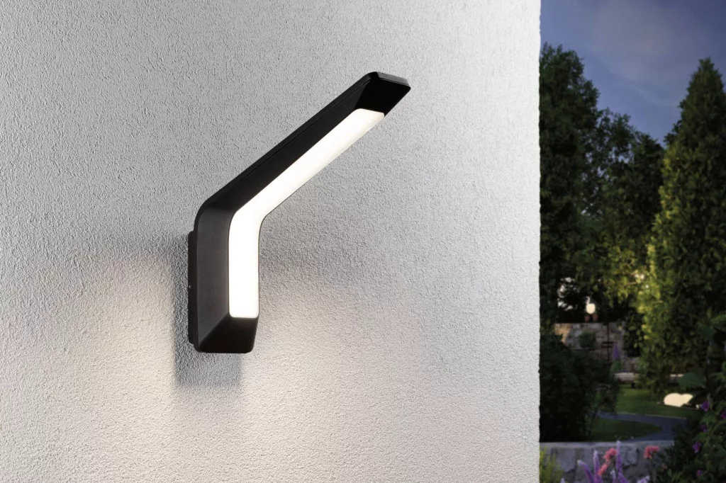 A 950 lm-es Merano LED kültéri fali lámpa ideális a tengerpart közelében lévő lakóépületek külső falaihoz. Cserélhető LED moduljával és különösen korrózióálló felületével tökéletesen védett a sós levegő ellen. A lámpa egyenletes, meleg fehér megvilágítást biztosít, amely biztonságosan megvilágítja a bejárati teret. Antracit színének köszönhetően harmonikusan illeszkedik bármilyen környezetbe. A beépített szürkületérzékelő állandó tájolású lámpát kapcsol be, amely a teljes fénykibocsátás 20%-át teszi ki sötétben. Ha mozgás van a mozgásérzékelő érzékelési tartományán belül, a lámpa automatikusan 100%-os fényerőre kapcsol, és 15 másodpercig égve marad, mielőtt visszaváltana a 20%-os fénykibocsátással rendelkező tájoló lámpára. Az innovatív QuickPlug rögzítési technológia lehetővé teszi a lámpa egyszerű és időtakarékos felszerelését.