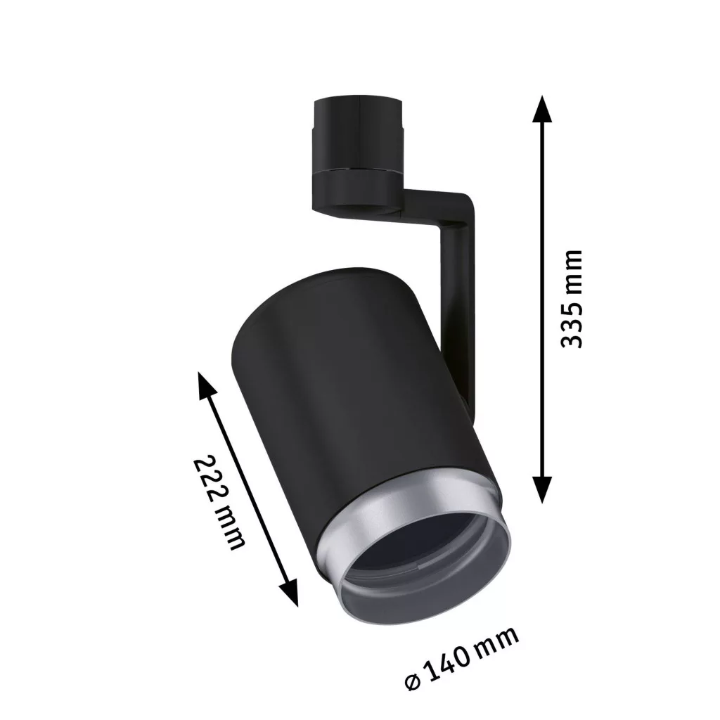 Műszaki adatok: 2021-es energiahatékonysági osztályok: n.rel. · Foglalat: E27 · Fényforrások száma: 1 · Gyártói szín: Fekete · Helyiség: Dolgozószoba, Gyerekszoba, Konyha, Hálószoba, Nappali/étkező · Méret, magasság: 287 mm · Méret, szélesség: 222 mm · Sorozat: URail · Védelmi osztály: II · Átmérő: 140 mm · Üzemi feszültség: 230 V