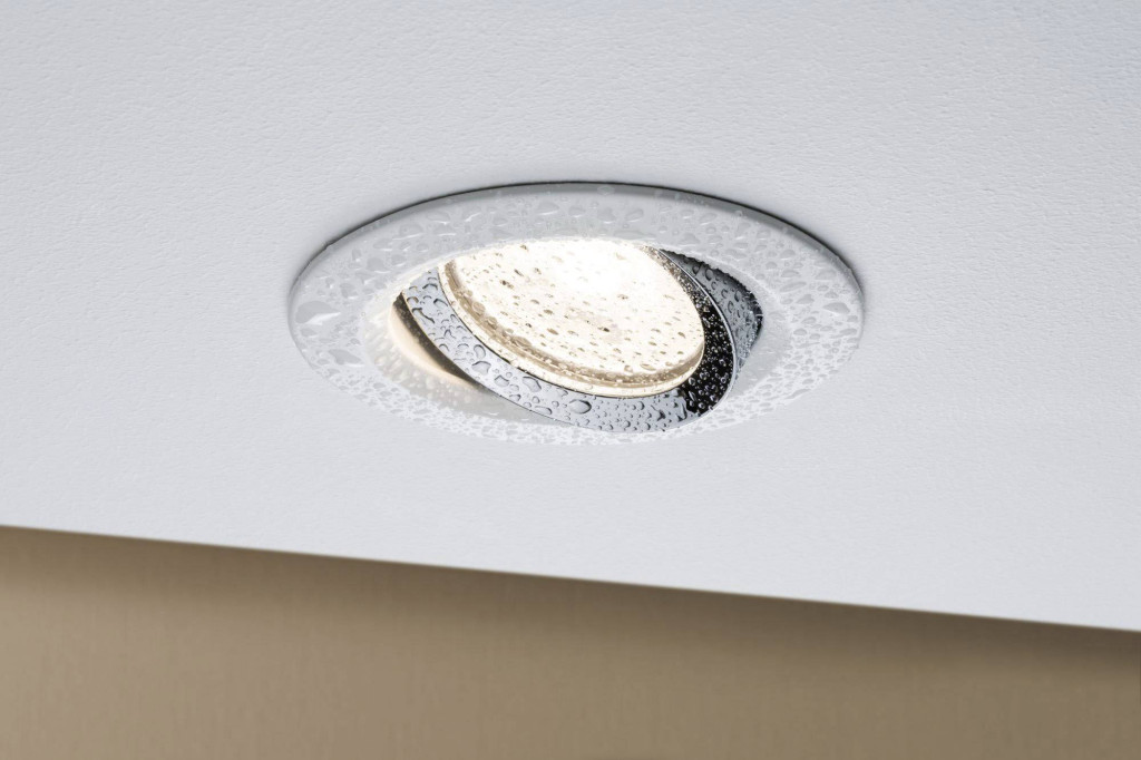 Műszaki adatok: 2021-es energiahatékonysági osztályok: n.rel. · Anyag: Alumínium, Cink · Beépítési mélység: 60 mm · Beépítési átmérő: 83 mm · Foglalat: GU10 · Forgási tartomány, max.: 30 ° · Fényforrás típus: Halogén · Fényforrások száma: 1 · Fényforrással: Nem · Gyártói szín: Fehér (matt), Króm · Helyiség: Fürdőszoba, Nedves helyiség · Kivitel (lámpa): Kerek · Külső átmérő: 93 mm · Lámpa jellemzők: Dönthető, Dimmelhető · Stílus: Modern/dizájn · Súly: 395 g · Teljesítmény: 35 W · Teljesítmény fényforrásonként: 35 W · Védelmi osztály: III · Védelmi típus: IP65 · Védőüveg: átlátszó · Átmérő: 93 mm · Üzemi feszültség: 230 V