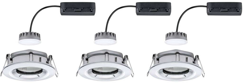 Technical specifications: 2021-es energiahatékonysági osztályok: n.rel. · Anyag: Alumínium · Beépítési mélység: 45 mm · Beépítési átmérő: 83 mm · Design (lights): #####Modern/Design · Foglalat: LED · Fényforrás típus: LED (egyszínű) · Fényforrások száma: 3 · Fényforrással: Igen · Fényszín: 2700 K · Fényszín (fényforrás): Melegfehér · Fényáram összesen: 470 lm · Fényáram/fényforrás (lumen): 470 lm · Kivitel: Kerek · Külső Ø: 93 mm · Lámpa jellemzők: Dimmelhető,Dönthető,#####Geringe Einbautiefe · Space (lights): Fürdőszoba · Sugárzási szög: 120 ° · Szín: Króm · Teljesítmény: 20.4 W · Teljesítmény fényforrásonként: 6 W · Védelmi osztály: II · Védelmi típus: IP65 · Védőüveg: #####satiniert · Átmérő: 93 mm · Üzemi feszültség: 230 V