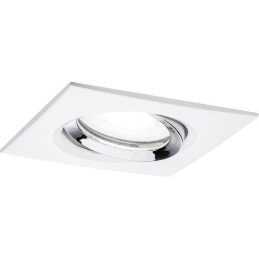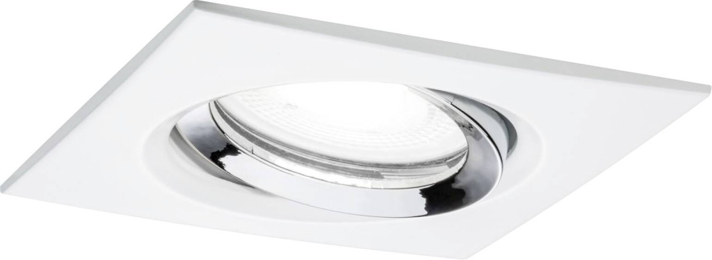 Műszaki adatok: 2021-es energiahatékonysági osztályok: n.rel. · Anyag: Alumínium, Cink · Beépítési mélység: 95 mm · Beépítési átmérő: 83 mm · Foglalat: GU10 · Forgási tartomány, max.: 30 ° · Fényforrás típus: LED · Fényforrások száma: 1 · Fényforrással: Igen · Fényszín: 4000 K · Fényszín (fényforrás): Semleges fehér · Fényáram összesen: 470 lm · Fényáram/fényforrás (lumen): 470 lm · Gyártói szín: Fehér (matt), Króm · Helyiség: Fürdőszoba · Kivitel (lámpa): Szögletes · Külső hossz: 9.3 cm · Külső szélesség: 93 mm · Lámpa jellemzők: Dimmelhető, Dönthető · Stílus: Modern/dizájn · Sugárzási szög: 36 ° · Teljesítmény: 6 W · Teljesítmény fényforrásonként: 6 W · Védelmi osztály: II · Védelmi típus: IP65 · Védőüveg: átlátszó · Üzemi feszültség: 230 V