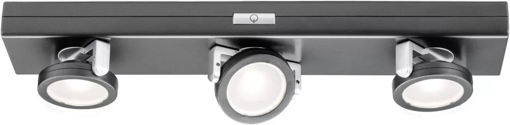 Műszaki adatok: 2021-es energiahatékonysági osztályok: n.rel. · Anyag: Műanyag · Foglalat: Fixen beépített LED-es · Fényforrás típus: LED · Fényforrások száma: 3 · Fényforrással: Igen · Fényszín: 3000 K · Fényszín (fényforrás): Melegfehér · Fényáram összesen: 54 lm · Fényáram/fényforrás (lumen): 18 lm · Gyártói szín: Antracit, Króm (matt) · Helyiség: Konyha, Hálószoba · Kivitel (lámpa): Derékszögű · Lámpa jellemzők: Dimmelhető, Dönthető, Kapcsolóval · Méret, hossz: 31 cm · Méret, magasság: 5 cm · Méret, szélesség: 6 cm · Stílus: Vintage, Fiatal lakás, Ipari · Tápellátás: Elemekről üzemeltetett · Üzemi feszültség: 9 V
