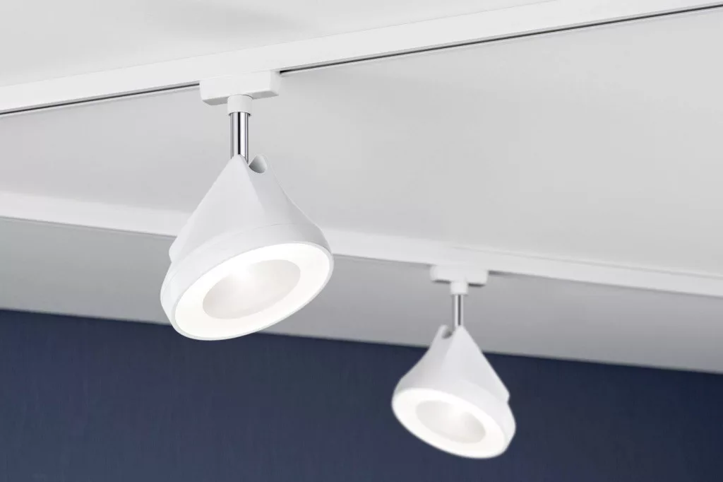 A krómozott ékezetes fehér URail Spot Arena-t magas lumenteljesítmény jellemzi. Lapos kialakítása ellenére a beépített lencsék meghatározott irányú fényt biztosítanak, meghatározott fényszög mellett. A fényerőt egy fali fényerőszabályzóval lehet szabályozni.