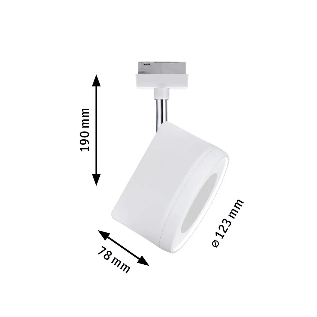 Műszaki adatok: 2021-es energiahatékonysági osztályok: n.rel. · Anyag: Fém · Foglalat: Fixen beépített LED-es · Fényforrás típus: LED · Fényforrások száma: 1 · Fényszín: 2700 K · Fényszín (fényforrás): Melegfehér · Fényáram összesen: 1180 lm · Fényáram/fényforrás (lumen): 1180 lm · Gyártói szín: Fehér, Króm · Lámpa jellemzők: Dimmelhető, Forgatható, Dönthető · Méret, hossz: 12.3 cm · Méret, magasság: 19.1 cm · Méret, szélesség: 7.8 cm · Sorozat: URail · Teljesítmény: 15 W · Teljesítmény fényforrásonként: 15 W · Védelmi osztály: II · Üzemi feszültség: 230 V