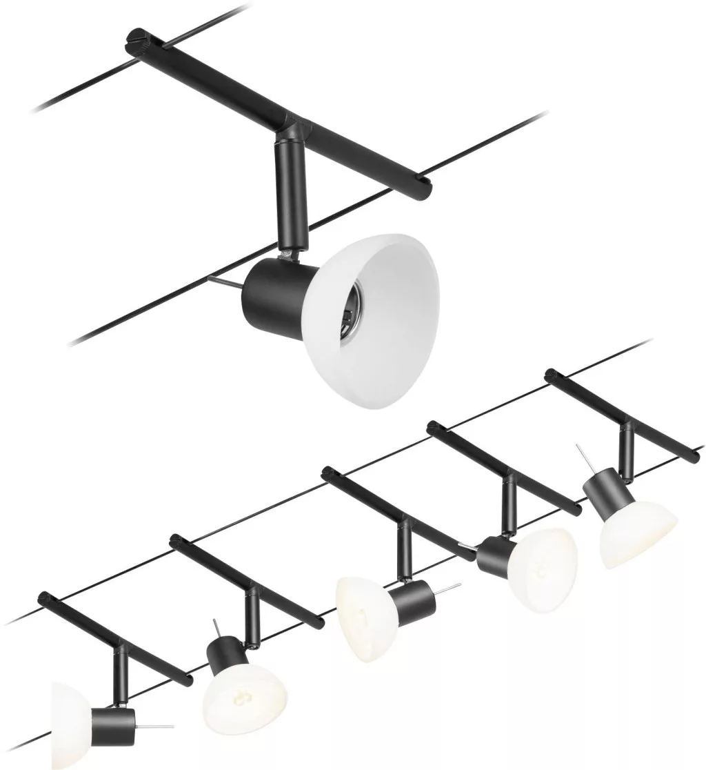A fekete (matt) #Chrome Sheela sorozat felszerelhető a falra és a mennyezetre is, és így korlátlan tervezési lehetőségeket kínál. Függetlenül attól, hogy egyenes, ferde vagy ferde - a kábelrendszerek minden helyiségbe illeszkednek, és a nehéz telepítési körülmények problémamegoldói. Az alapkészlet külön-külön kiegészíthető egyedi foltokkal, terelőkkel és egyéb kiegészítőkkel. A 10 m hosszú kötelet középen fel lehet osztani úgy, hogy a rendszer legfeljebb 5 m-ig nyújtható legyen. Ezzel a rendszerrel optimális fényeloszlás valósítható meg, növekvő fényigénnyel könnyen bővíthető. Csak egy konnektor szükséges a lámpák elosztásához a helyiségben. A 12 V DC (egyenfeszültségű) technológiával rendelkező rendszerek nem tompíthatók beépített fali dimmerrel.