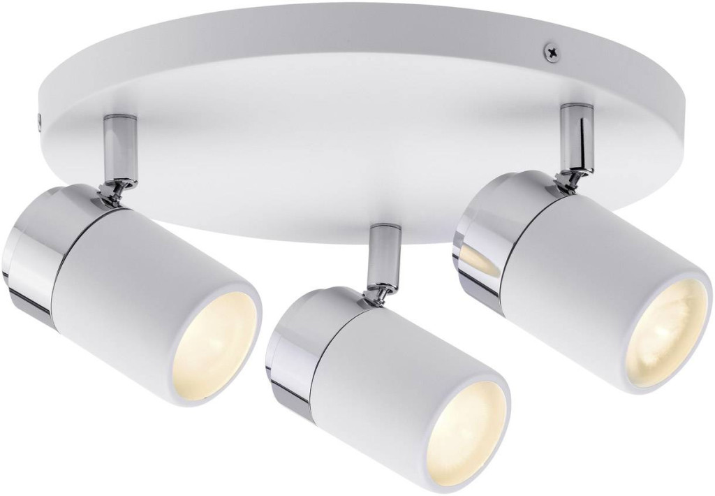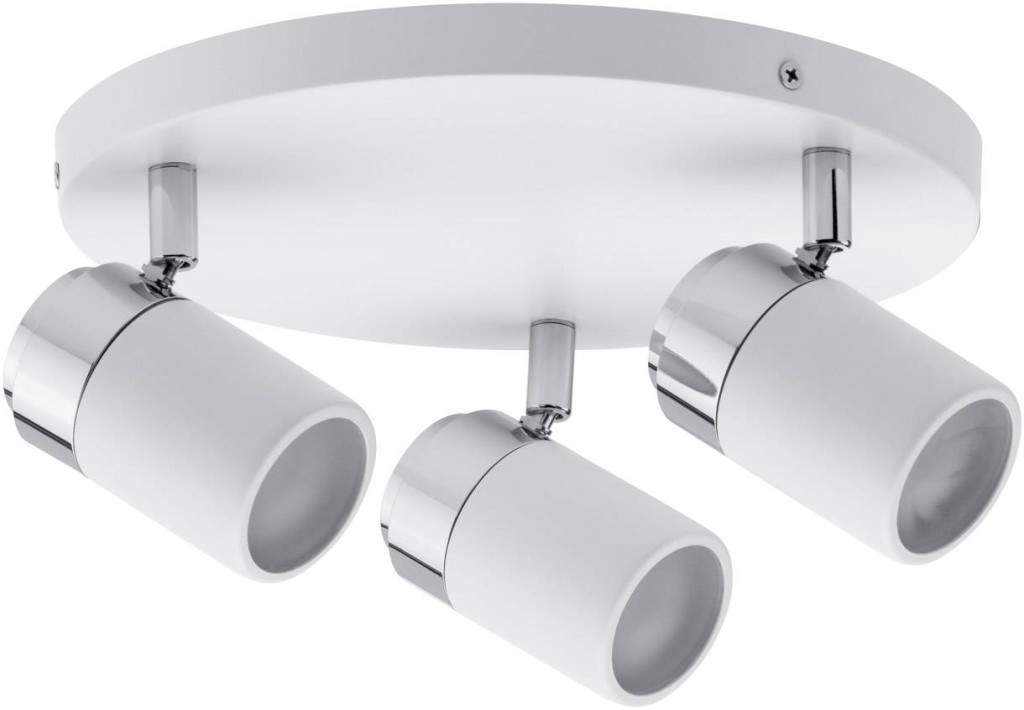 Műszaki adatok: 2021-es energiahatékonysági osztályok: n.rel. · Anyag: Fém · Foglalat: GU10 · Fényforrás típus: LED · Fényforrások száma: 3 · Fényforrással: Nem · Gyártói szín: Fehér, Króm · Helyiség: Nappali/étkező, Konyha, Hálószoba · Lámpa jellemzők: Dimmelhető, Forgatható, Dönthető · Méret, magasság: 11 cm · Stílus: Modern/dizájn, Fiatal lakás · Teljesítmény: 30 W · Teljesítmény fényforrásonként: 10 W · Védelmi osztály: II · Védelmi típus: IP44 · Átmérő: 25 cm · Üzemi feszültség: 230 V