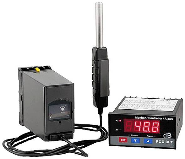 SLT zajmérő készülék állandó telepítéshez relé kimenettel és vezérlőkimenettel A zajjelző rendszer egy fogantyús mérőmikrofonból és egy 1,5 m-es kábelen található fali konzolból, egy zajjeladóból és egy digitális kijelzőből áll. A zajjelző rendszer fő alkalmazási területe az üzemcsarnokok, termelő helyiségek, valamint nagyobb rendezvények (diszkók, népi fesztiválok, gokartpályák...) folyamatos zajmérése és zajfigyelése. A digitális kijelző relé kimenettel rendelkezik a riasztó kürtök vagy villogó fények vezérlésére vizuális vagy akusztikus figyelmeztetésekhez, valamint egy vezérlőkimenet. Ennek a riasztási kimenetnek a határértéke programozható a kijelzőn. Az analóg kimeneti jel az ablakszárnyak vezérlésére is használható... vagy az adóból érkező jelek menthetők, kiértékelhetők és dokumentálhatók egy naplózón. A zajjelző készülék csatlakoztatása nagyon egyszerű, és 240 V-os hálózati tápfeszültségről üzemeltethető. A zajfigyelmeztető kijelző digitális kijelzőjét a zajjeladón előre konfigurálva szállítjuk, és azonnal használható.