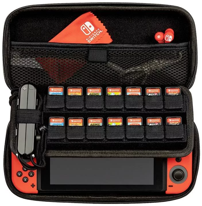 Tárolja és védje Nintendo Switch, Switch Lite vagy Switch OLED modelljét a stílusos Elite Edition Deluxe Travel Case tokban! A konzolnak és a játékhoz nélkülözhetetlen kiegészítőknek helyet biztosító táska tökéletes az útközbeni igényeihez. Kompatibilis a Nintendo Switch, Nintendo Switch Lite és Nintendo Switch (OLED-modell) készülékekkel. Erős EVA tok a konzolhoz, akár 14 játékhoz és különféle játékkiegészítőkhöz. Állítható, önzáró tartozéktáska konzol emelőpánttal a Nintendo Switch biztonságos és egyszerű eltávolításához. Integrált gyorsfogantyú pattintható zárással a hátoldalon. Hivatalosan a Nintendo licence