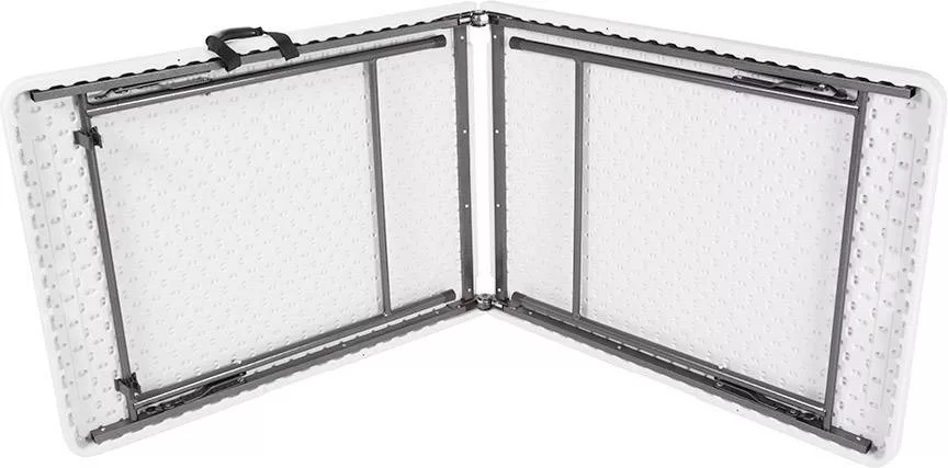 Praktikus összecsukható asztal különféle célokra, például kempingezéshez, kerthez, rendezvényekhez, építkezéshez A polietilén asztal felülete érzéketlen a dudorokra, karcolásokra, foltokra és kopásra.
