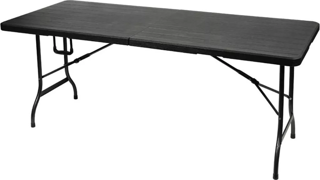 Praktikus összecsukható asztal különféle célokra, például kempingezéshez, kerthez, rendezvényekhez, építkezéshez A polietilén asztal felülete érzéketlen a dudorokra, karcolásokra, foltokra és kopásra.