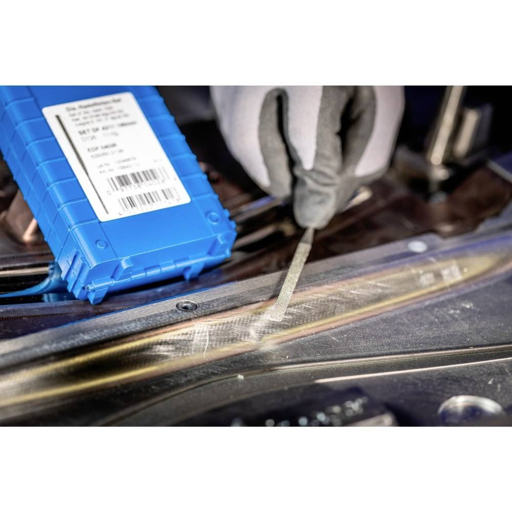 A gyémántszemcsés tűreszelő készleteket műanyag tokban szállítjuk, amely véd a korróziótól és a mechanikai sérülésektől. Ez ideális tárolást biztosít a szerszámtárolókon ill. a munkapadon.