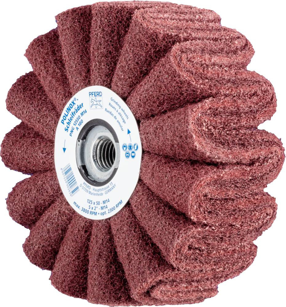 POLINOX polárcsiszoló kerék PNG Ø 125 x 50 mm M14 A 180 menet a finom csiszoláshoz és simításhoz