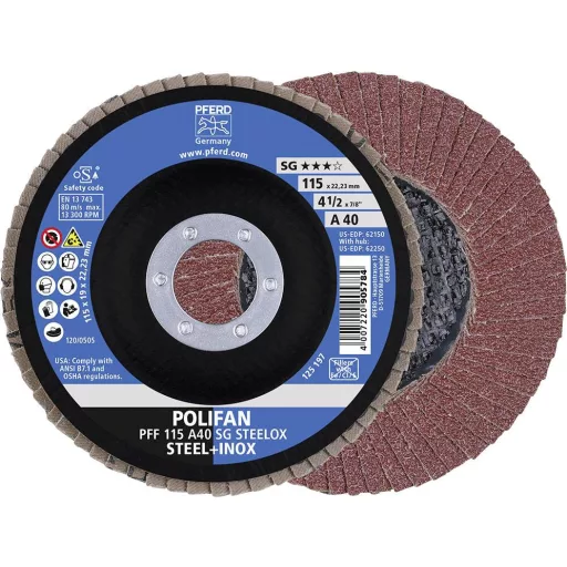POLIFAN legyezőlapos csiszolókorong, PFF 115 A 40 SG STEELOX