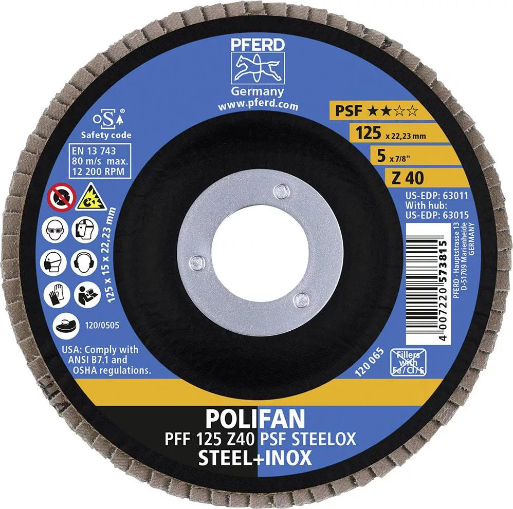 POLIFAN legyezőlapos csiszolókorong, PFF 125 Z 40 PSF STEELOX