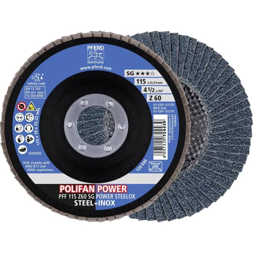 POLIFAN legyezőlapos csiszolókorong, PFF 115 Z 60 SG POWER STEELOX